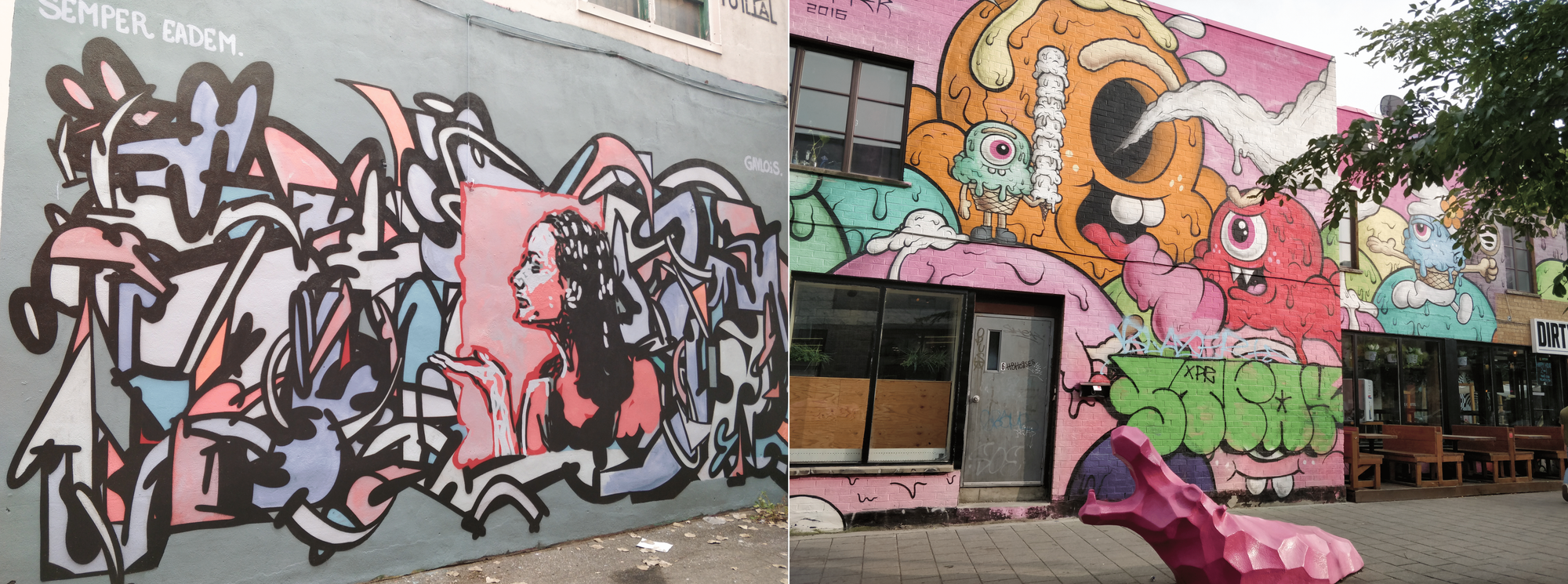Le Boulevard Saint-Laurent est connu pour ses différentes fresques, donc j'ai parcouru le boulevard à la recherche de ces pépites. Voici un florilège de celles que j'ai trouvées les plus jolies !