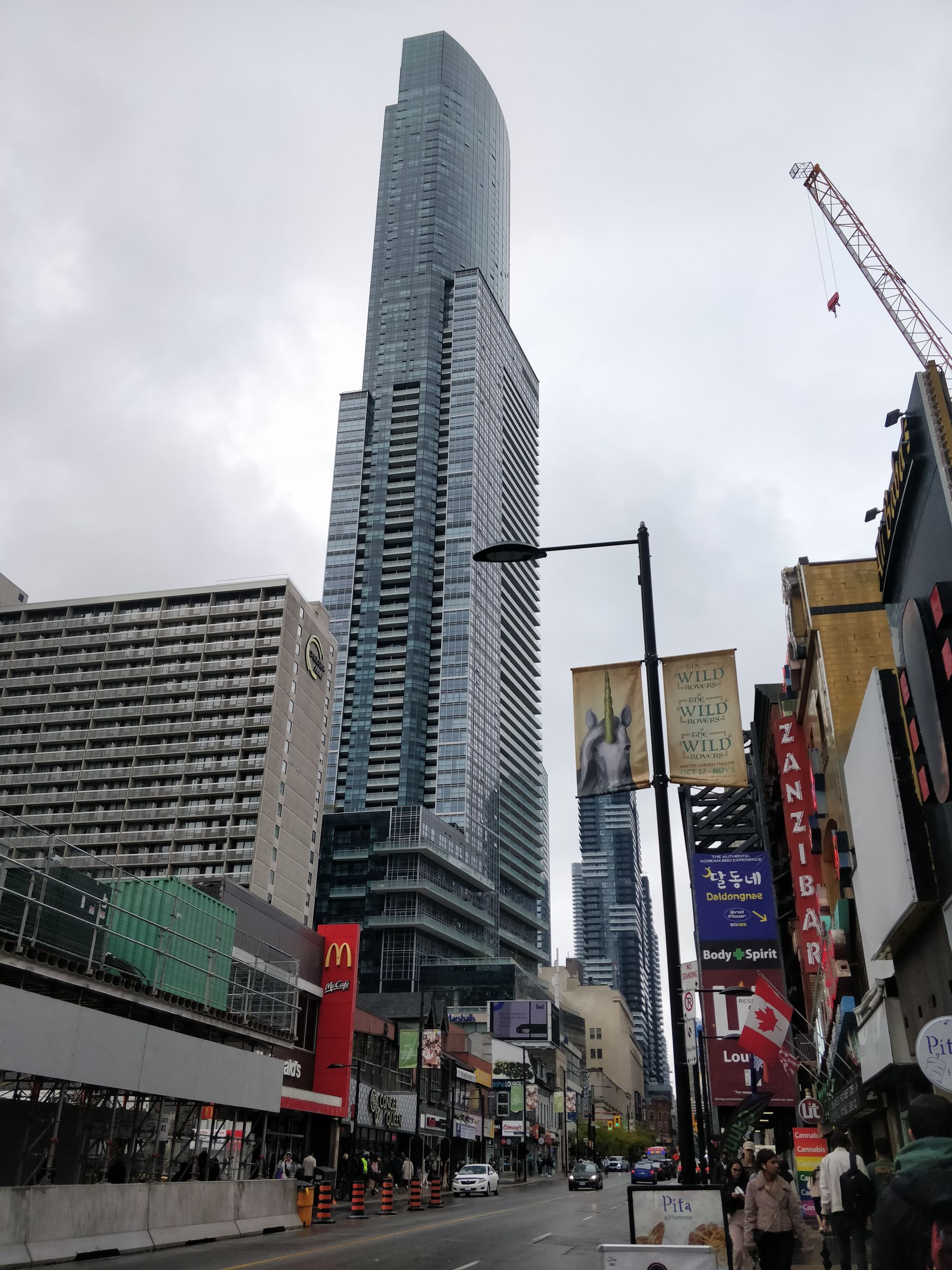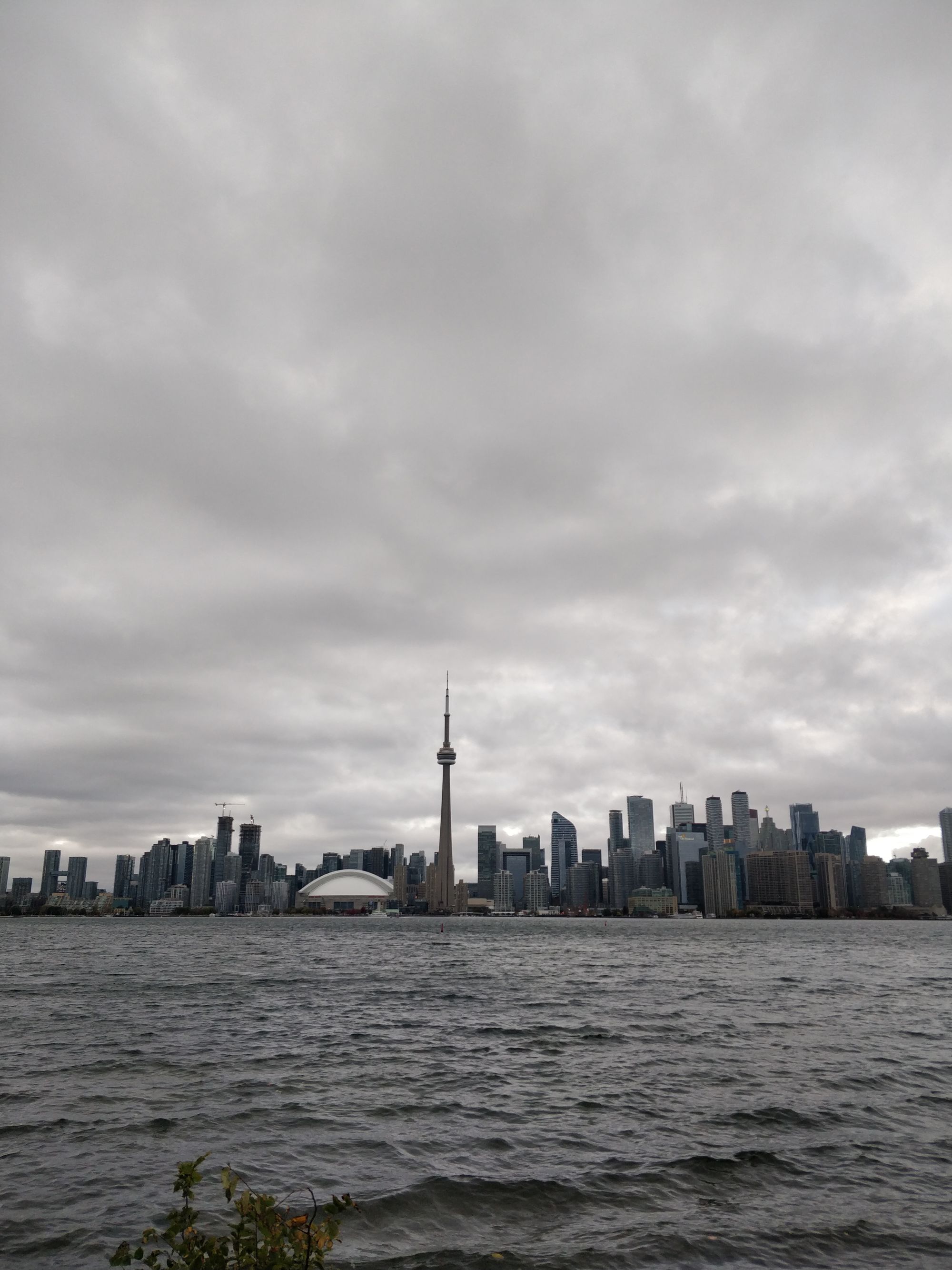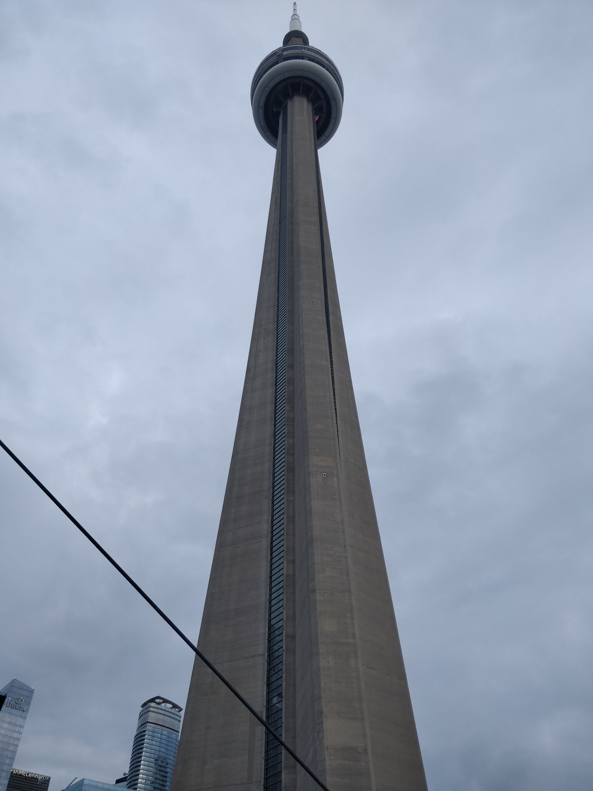 Après ça, on est retourné·e·s vers le centre, alors que ça commençait à s'assombrir. On est passé·e·s juste en bas de la tour CN (qui n'est pas très belle de près).