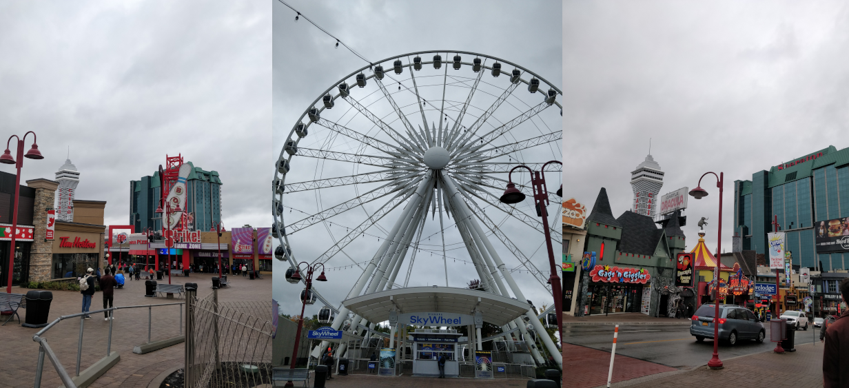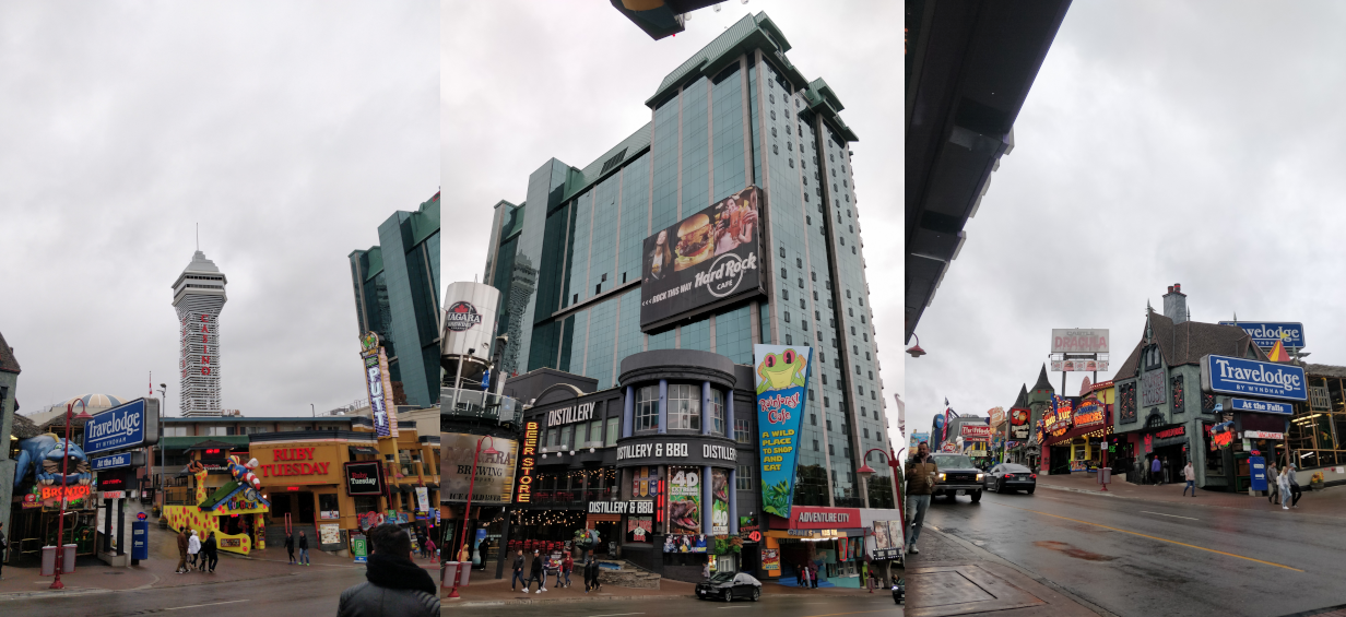 On m'avait prévenue que vu la notoriété de l'endroit, c'est souvent un peu décevant de le voir en vrai, en plus du contraste entre les chutes et le village type Las Vegas à côté. Vraiment, on se serait cru au parc d'attractions La Ronde dont j'ai parlé il y a quelques articles. Il y a des jeux d'arcades, un cinéma 4D, un mini-golf à thème dinosaures et même un musée de statues en cire. Bref, c'est loin d'être l'ambiance qu'on peut imaginer autour d'un endroit aussi majestueux que les chutes du Niagara. On a quand même bien aimé, mais apparemment il y a des chutes un peu plus impressionnantes -bien que moins connues- au Canada (Montmorency).