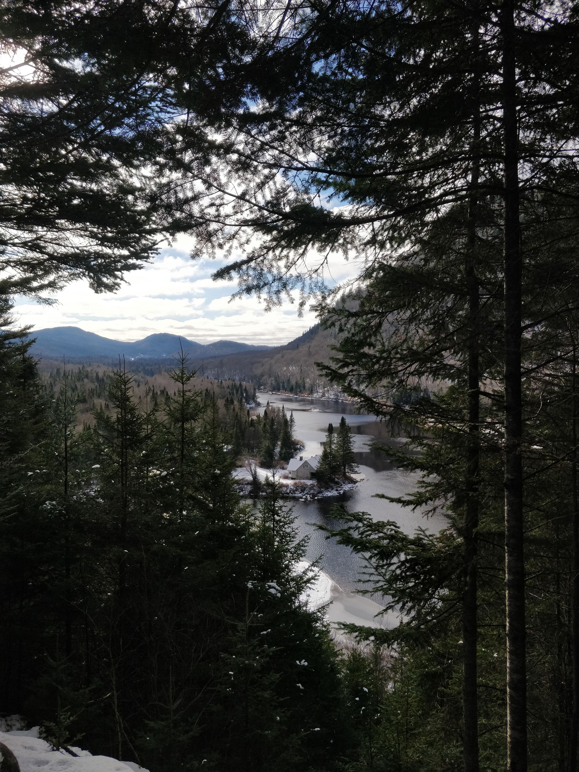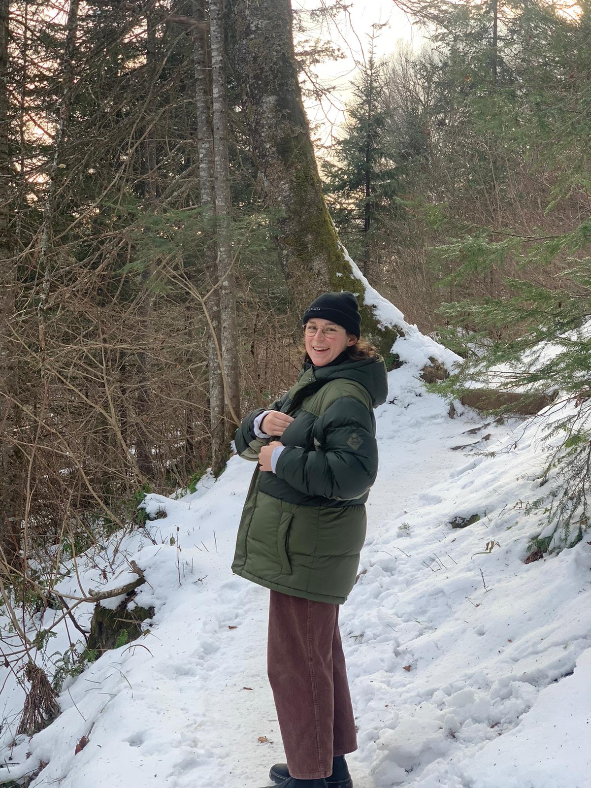 En arrivant à Charlevoix, on a été agréablement surpris·e·s de voir 10cm de neige au sol. La maison dans laquelle nous logions est sur un grand terrain au bord d'une rivière qui gèle l'hiver, donc le paysage était magnifique.