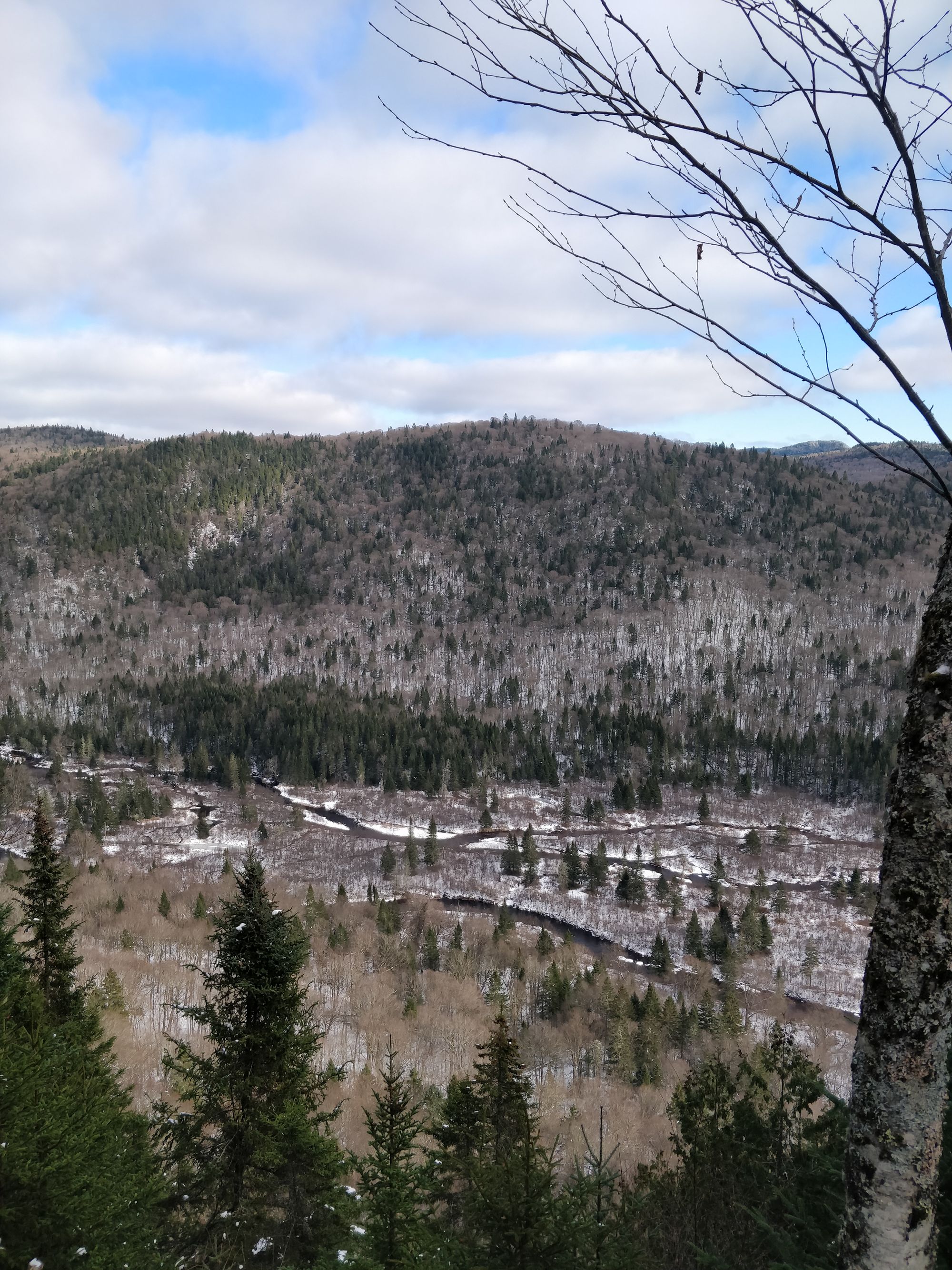 On avait consulté l'état des sentiers sur le site, mais on a quand même eu un peu peur en voyant la neige partout en arrivant, parce qu'on avait absolument aucun équipement adapté.